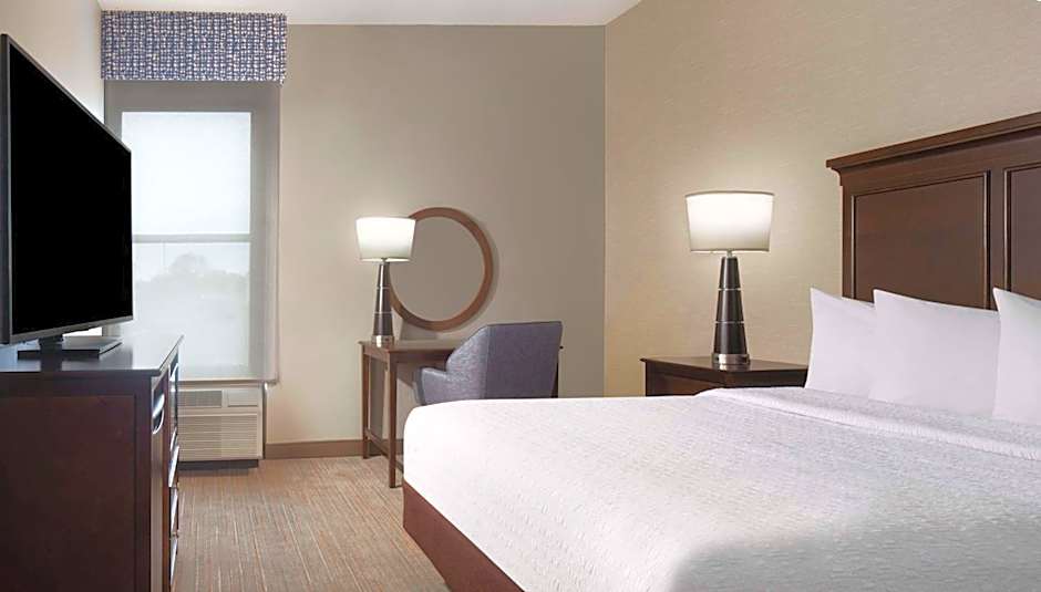 Room features a flat-screen cable TV and a lounge chair with ottoman.